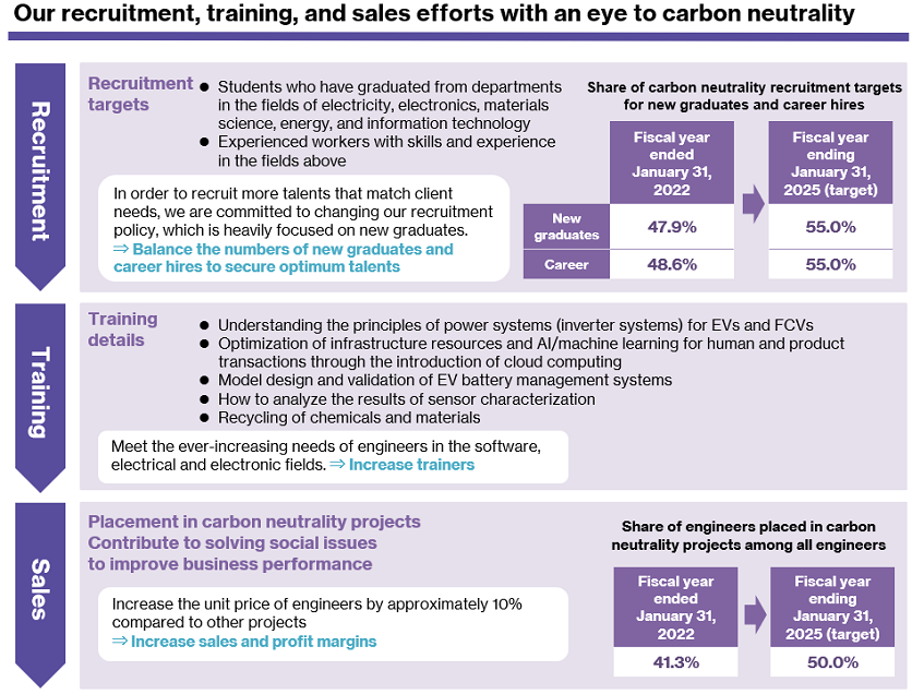 | Change in reputation from investors | Contribute to the development of customers’ low-carbon products by dispatching engineers with low-carbon skills Acquire new clients by strengthening the low-carbon skillsets of our engineers | |||
